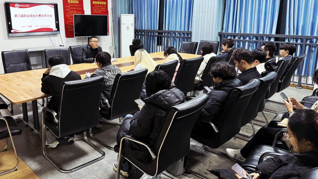为深入贯彻“以赛促学、以赛促教、以赛促就”的育人理念,进一步增强学生职业规划意识,提升就业核心竞争力与可持续发展能力,2025年11月23日晚,智能建造学院在弘义楼7215党员活动室隆重举行了第三届大学生职业规划大赛动员大会。本次大会由学院党总支副书记张献慧主讲,各年级参赛学生代表参会。